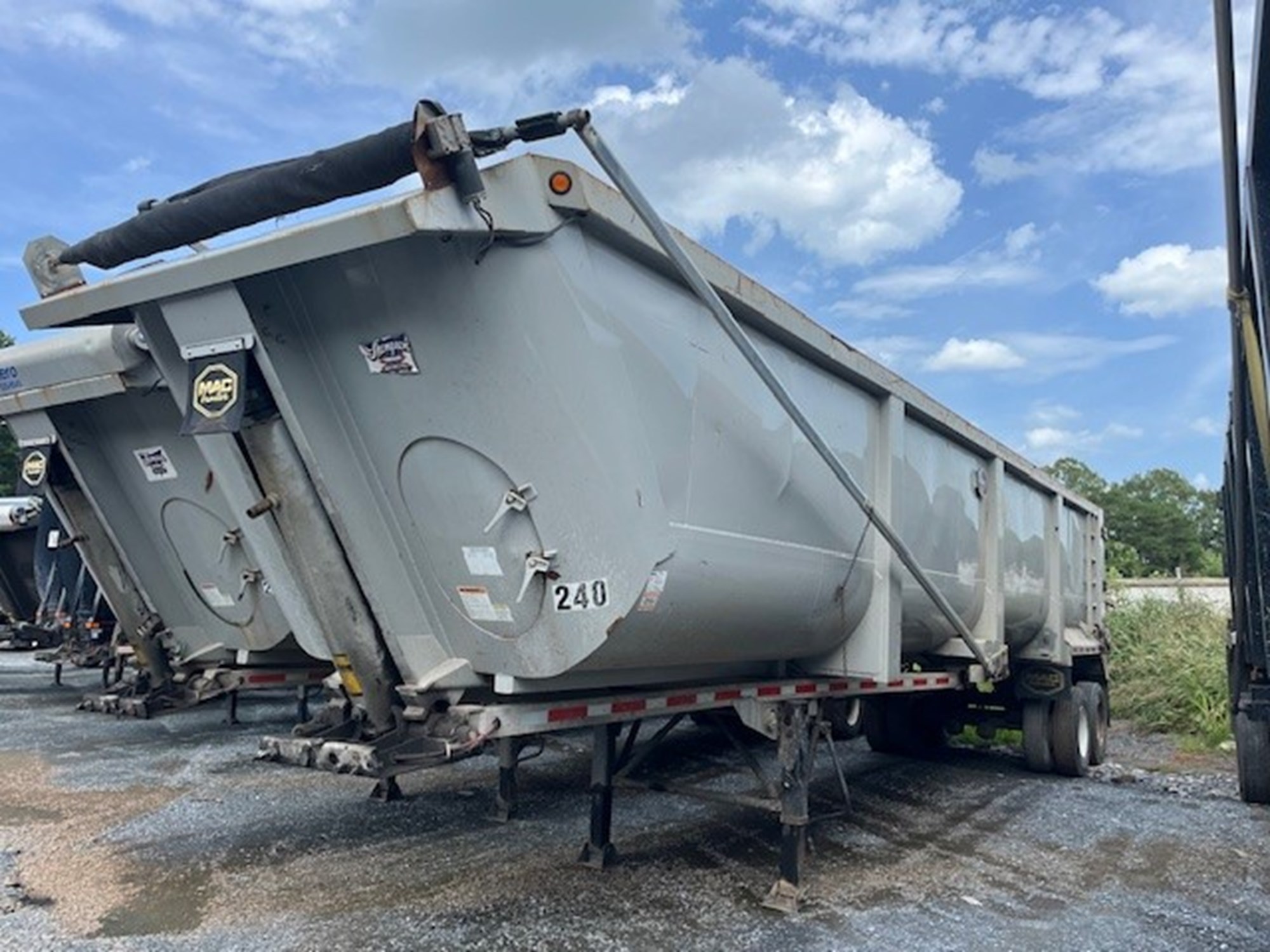 2015 Mac 40′ Frameless Steel Dump Trailer Electric Tarp Barn Door Rear Gate Manhole Door in Front 16″ Pin Spring/Center Point Suspension.